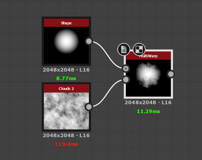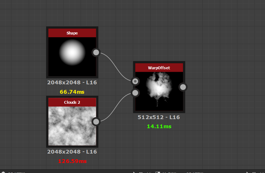 In the essence of learning Substance Designer and pushing my skills, I decided to take inspiration from a node i'd seen created by Daniel Thiger and see if i could create my own version of a node that does the same thing. I created a WarpOffset node that allows you to warp in a direction and keeps the result at the origin point, then i used that and created a multi warp node that allows you to warp in a selection of multiple directions and maintaining the result at origin. Intensity is also exposed and can be set.